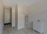 Op de 1e verdieping is een ruime overloop met toegang tot 3 slaapkamers, de badkamer en een cv-ruimte. Er zijn 3 slaapkamers aanwezig van ca. 7, 10.3 en 12.6 m² groot. De in 2012 vernieuwde badkamer is geheel betegeld en ingericht met inloopdouche, wandcloset, wastafel met meubel en designradiator. In de cv-ruimte hangt de combiketel (Nefit topline bj. 2008) en hier treft u ook de wasmachine-aansluiting.
