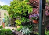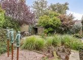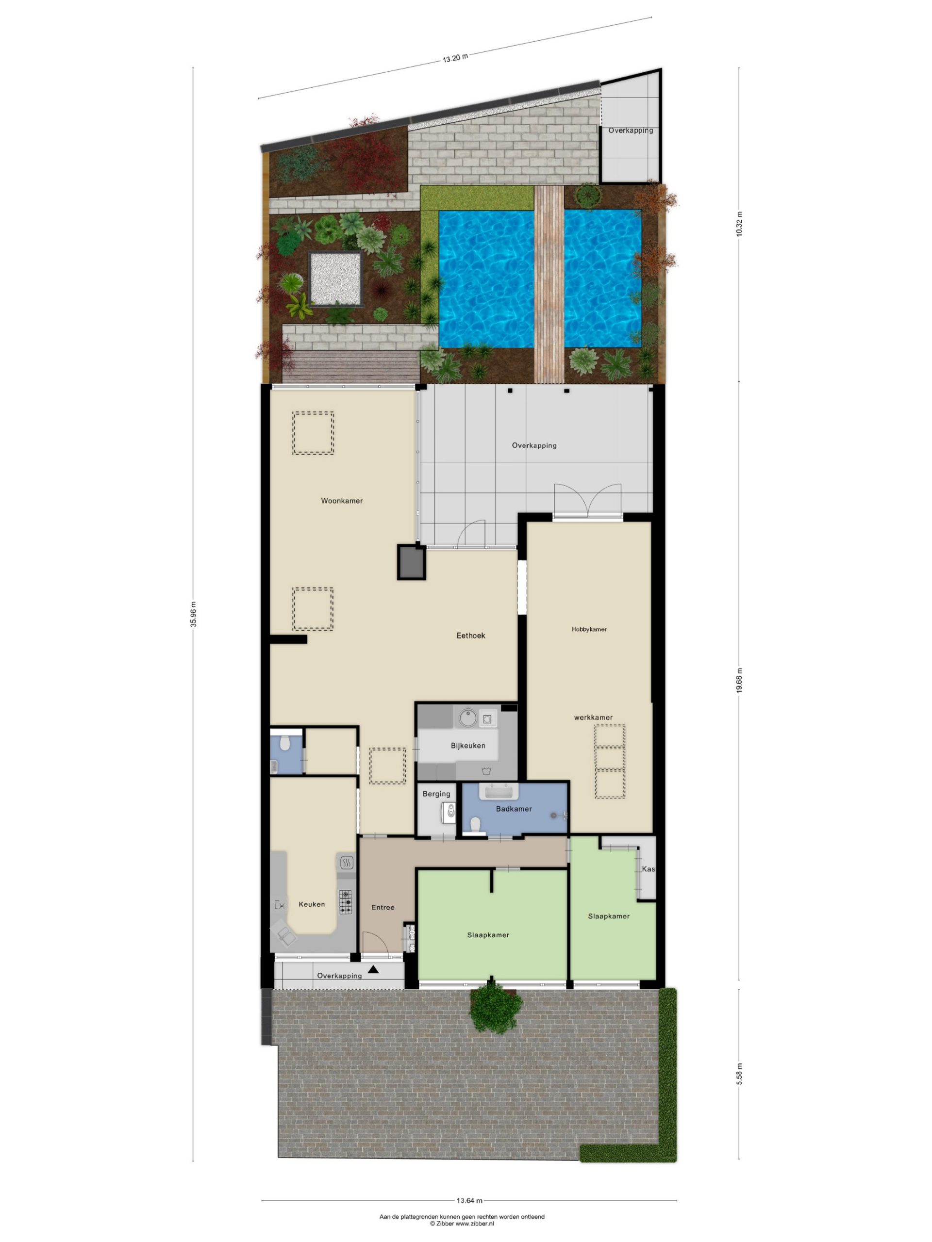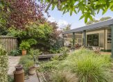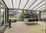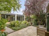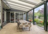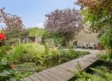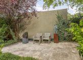 Buiten geniet je van een fraai omsloten tuin met aan het huis een zeer royale overdekte buitenruimte/veranda. Dit is de ideale plek om in alle privacy te ontspannen of gezellig samen te zijn en van de mooie tuin te genieten. De patiotuin beschikt over een grote vijver met onlangs vernieuwde hardhouten vlonder. Rondom is er veel groen en de tuin biedt 100% privacy. Het totale perceel is maar liefst 448 m² groot. Aan de voorzijde van de woning is ruimte gemaakt om enkele auto’s op eigen terrein te kunnen parkeren en is plek voor een berging/fietsenstalling.