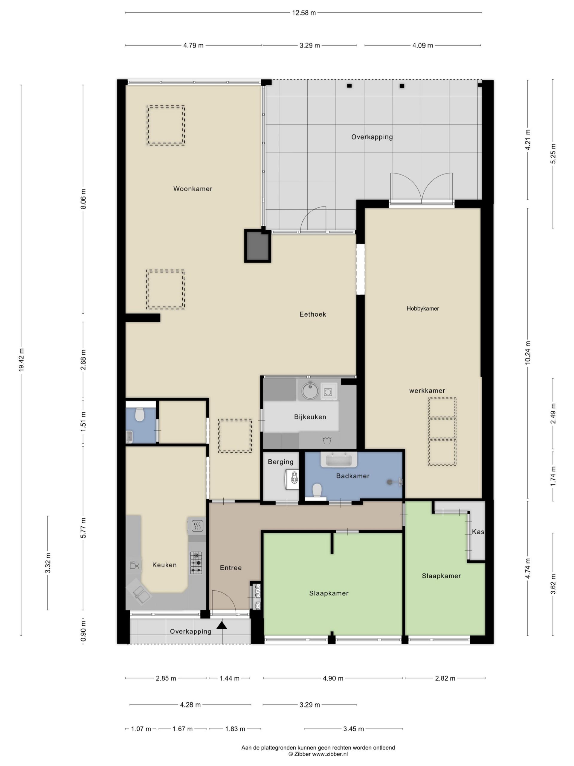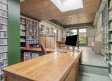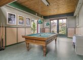 Er is ook nog een grote hobbyruimte aangebouwd, welke gebruikt is als bibliotheek met werkkamer en als heuse biljartruimte. Er zijn openslaande deuren naar veranda. Deze ruimte is multifunctioneel in te zetten en zou ook als kantoor-/werkruimte kunnen fungeren dan wel slaap-/speelkamer. Erg leuk bedacht!