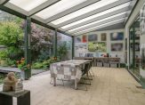 Verrassend en bijzonder is de gigantische lichte leefruimte aan de achterzijde van de woning. Deze leefruimte bestaat uit een woonkamer en open eetkamer, maar de indeling is naar eigen inzicht en smaak aan te passen. In de woonkamer zijn een tweetal zithoeken gemaakt, waarbij ook nog eens rondom ramen zijn gericht op de mooie tuin. Naast de grote ramen zorgen lichtkoepels voor extra lichtinval. Het verhoogde eetgedeelte ligt centraal in de woning en heeft een deur naar de veranda en tuin. Dankzij de praktische indeling en de royale afmetingen ervaar je een ongekende vrijheid in wonen.
