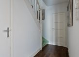 Via een gang met eveneens een eikenhouten vloer is er toegang tot een trapkast, toiletruimte voorzien van wandcloset en fontein en is er de trapopgang naar tweede verdieping.