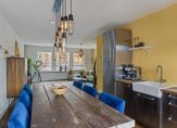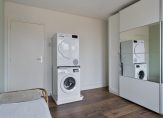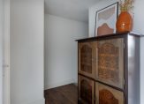 Via de trapopgang komt u op het grote dakterras. Vanaf het dakterras is de entree van de woning bereikbaar. De woning betreedt u door de schuifpui bij de keukenruimte, welke aan de achterzijde is gelegen. De keuken is voorzien van een recht RVS keukenblok met houten werkblad, 5 pits gaskookplaat, oven, afzuigkap, koelkast en vaatwasser. De woonkamer met open keuken is totaal circa 41 m², waarbij de woonkamer is gelegen aan de voorzijde van de woning met mooi uitzicht over de galerij. De grote raampartijen zorgen voor veel lichtinval in de woning. Op de vloer ligt een mooie en sfeervolle parketvloer.