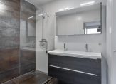 De overloop is voorzien van een nette laminaatvloer en geeft toegang tot drie slaapkamers en de badkamer. De ruime slaapkamers zijn allen voorzien van laminaatvloeren en grote raampartijen waardoor er veel lichtinval is. De grootste slaapkamer heeft een inbouwkast waar de cv.-ketel (Vaillant HR combiketel uit 2011) is geplaatst en heeft tevens rechtstreeks toegang tot de badkamer. Deze moderne badkamer is geheel betegeld en voorzien van een ruime inloopdouche, wastafelmeubel met dubbele kraan. In een van de slaapkamers zijn de witgoedaansluitingen aanwezig.