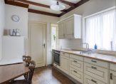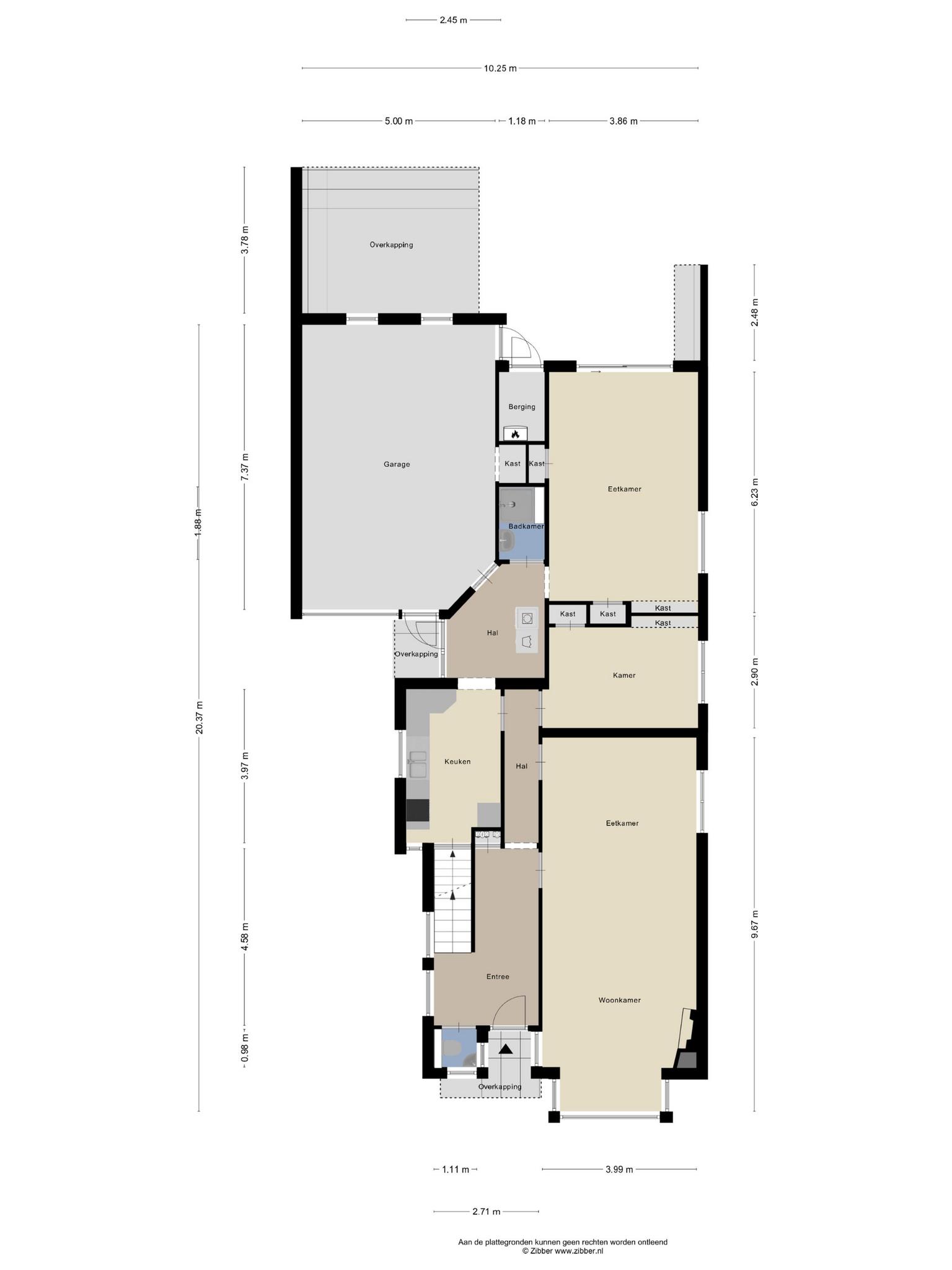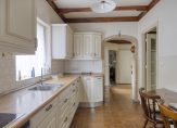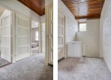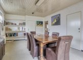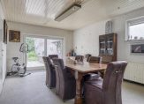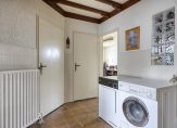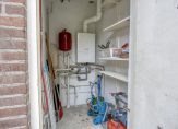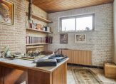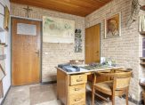 Verder zijn op de begane grond een werkkamer/kantoor met natuursteen vloer en vaste kasten. Er is een bijkeuken met witgoedaansluitingen, een eenvoudige doucheruimte met wastafel. Bij de bijkeuken is ook een portaal met buitendeur naar de oprit. Ook de garage is vanuit de bijkeuken bereikbaar. Deze garage heeft een elektrische paneeldeur en loopdeur naar de tuin. Een ruime stallings-/klusruimte. Tot slot is er nog een ruime tuinkamer met schuifpui naar de tuin.
