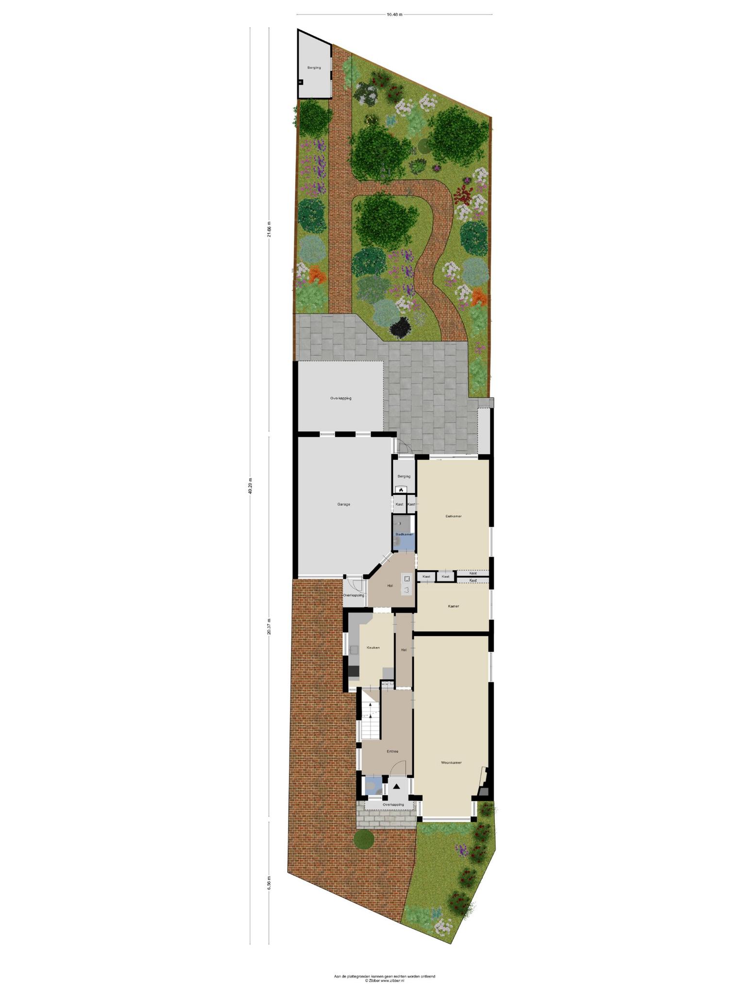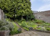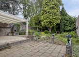 De tuin heeft een groot terras aan het huis met aansluitend een aangelegde tuin met veel groen, planten en paden. Hierbij ook de nodige hoge bomen, waardoor er veel privacy is. Achter de garage ligt een verhoogd terras met een veranda, dit zorgt voor een beschutte plek om te zitten en van de tuin te genieten.