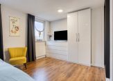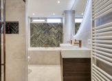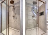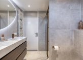 Via de overloop zijn de 2 slaapkamers (voorheen 3 slaapkamers) en de badkamer bereikbaar. De ruime slaapkamers van respectievelijk 17,8 en 12,7 m² groot en zijn voorzien van gestukadoorde wanden en laminaatvloeren. Indien gewenst kan de grootste slaapkamer weer gesplitst worden in twee slaapkamers. De moderne en luxe badkamer is compleet uitgevoerd en voorzien van grote douche met regendouche, wandcloset, ruim ligbad, designradiator en wastafelmeubel met dubbele wastafel.
