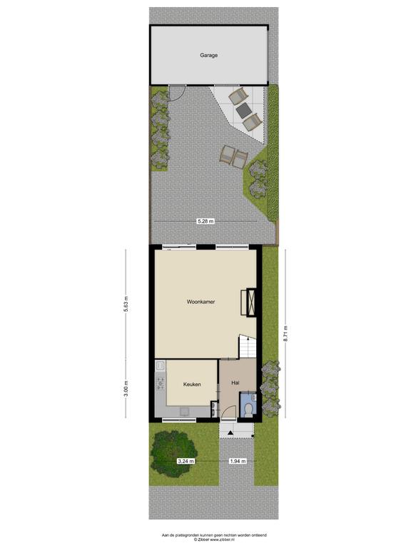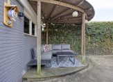 De tuin is gelegen op het zuidoosten, grotendeels verhard en beschikt achter in de tuin over een gezellige overkapping. Aan de zijkant van de tuin zit een eigen achterom. Achter in de tuin is de garage gesitueerd. De garage is voorzien van elektra, water en heeft een elektrische deur welke uitkomt aan de zijkant van de woning.