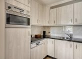 U komt binnen in een ruime hal met garderobehoek. Verder treft u hier de meterkast en een aparte berging met opstelling van de combiketel (Nefit 2024) en unit voor mechanische ventilatie. Vervolgens komt u in de ruime woonkamer met half open keuken (totaal 39 m² groot). Hier zorgen de grote raampartijen voor veel lichtinval en een leuk uitzicht over het straatbeeld. De ruimte is keurig afgewerkt met een moderne parketvloer, spachtelputzwanden en gestukadoord plafond met sierlijsten rondom. Tevens is er toegang tot een ruim balkon van waar u een leuk uitzicht heeft op de omgeving rondom het complex. Met een ligging op het Westen kunt u ook tot in de avonduren genieten van de zon. De half open keuken is compleet ingericht met een keurige U-vormige opstelling voorzien van een natuurstenen blad en inbouwapparaten zoals een inductiekookplaat, afzuigkap, koelkast, vaatwasser en combimagnetron/oven.