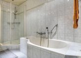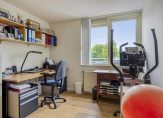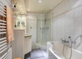 Vanuit de hal is er toegang tot twee slaapkamers, de badkamer, een aparte toiletruimte en een ideale inpandige berging met witgoedaansluiting en ook voldoende ruimte voor extra opslag. De badkamer is volledig betegeld en voorzien van een ligbad, douchecabine, designradiator en wastafel met badmeubel. De aparte toiletruimte is voorzien van een toilet en fonteintje. U heeft de beschikking over 2 ruime slaapkamers waar op beide kamers ruimte is voor een 2-persoons-bed of er één dienst kan doen als extra logeer-/werkkamer.