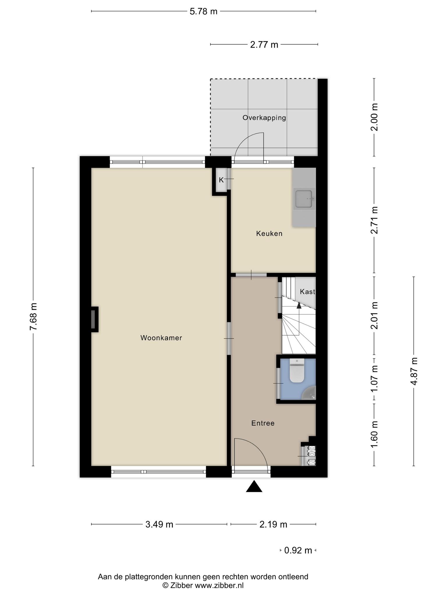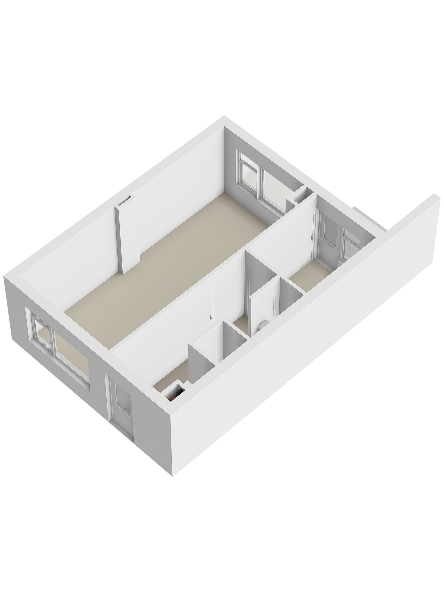 Hal met meterkast, toiletruimte, trapopgang naar de verdieping en provisiekast. De hal biedt toegang tot de woonkamer en de dichte keuken. De woonkamer beschikt over veel lichtinval door de grote raampartijen. De dichte keuken is voorzien van een eenvoudig recht keuken blok zonder inbouwapparatuur. Vanuit de keuken is er toegang tot de tuin.