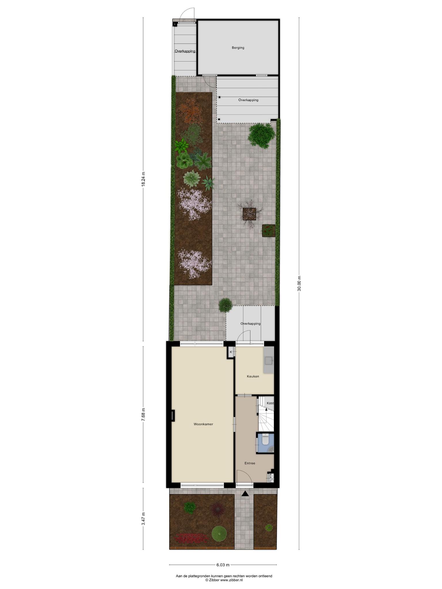 De tuin is gelegen op het zuidwesten en is grotendeels betegeld. Achter in de tuin staat een stenen tuinberging welke is voorzien van elektra. Tevens beschikt de tuin over een achterom.