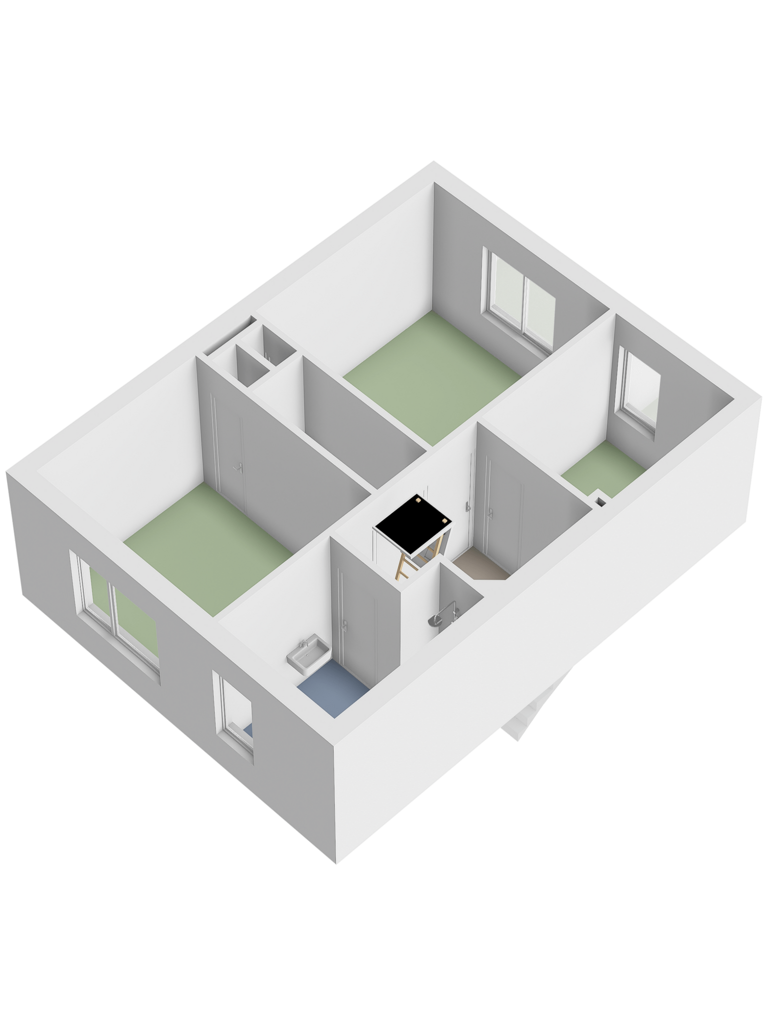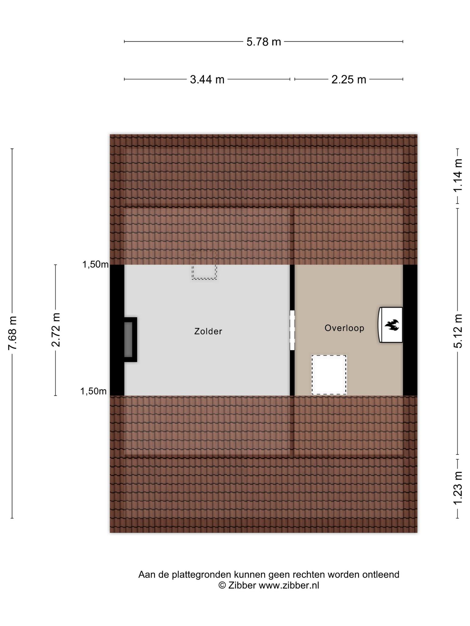 Middels een vlizotrap is de vliering bereikbaar. De overloop is voorzien van de opstelling van de combiketel uit 2011. De zolderkamer is voorzien van een klein dakraam. Door het plaatsen van een vaste trap en groter dakraam/dakkapel wordt een volwaardige tweede verdieping gecreëerd.