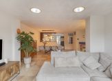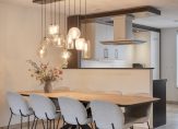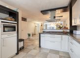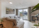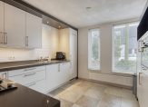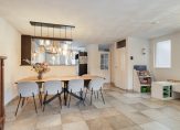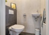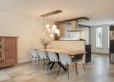 Ruime hal met garderobekast, toilet en trapopgang naar de verdieping. Bij binnenkomst in de woonkamer met open keuken valt direct de ruimte op. Er is een leefruimte van maar liefst ruim 55 m². Aan de voorzijde van de woning is de keuken met een nette inrichting voorzien van inbouwapparatuur zoals een 5-pits gasfornuis, combi oven/magnetron, koelkast, vrieskast en vaatwasser. De keukenruimte wordt door een gezellige barretje gescheiden van de woonkamer, maar er is wel een prettige verbinding. De woonkamer is een groot met ruimte voor een grote eettafel en een gezellig zithoek aan de tuinzijde. In de zithoek is een gashaard aanwezig en via een schuifpui kun je direct naar de tuin.