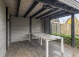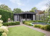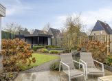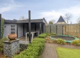 De zonnige achtertuin is fraai aangelegd, gelegen op het zuiden en biedt volop privacy. In de tuin ligt een ruim terras met elektrisch zonnescherm, kunstgras en mooi aangelegde borders. Deze borders zijn voorzien van een druppelsysteem ten behoeve van de watervoorziening van de planten. Achter in de tuin is een houten tuinhuis gebouwd met aansluitend een overdekt terras. Dit terras beschikt over terrasverwarming waardoor je lange tijd van het jaar heerlijk buiten kunt zitten.