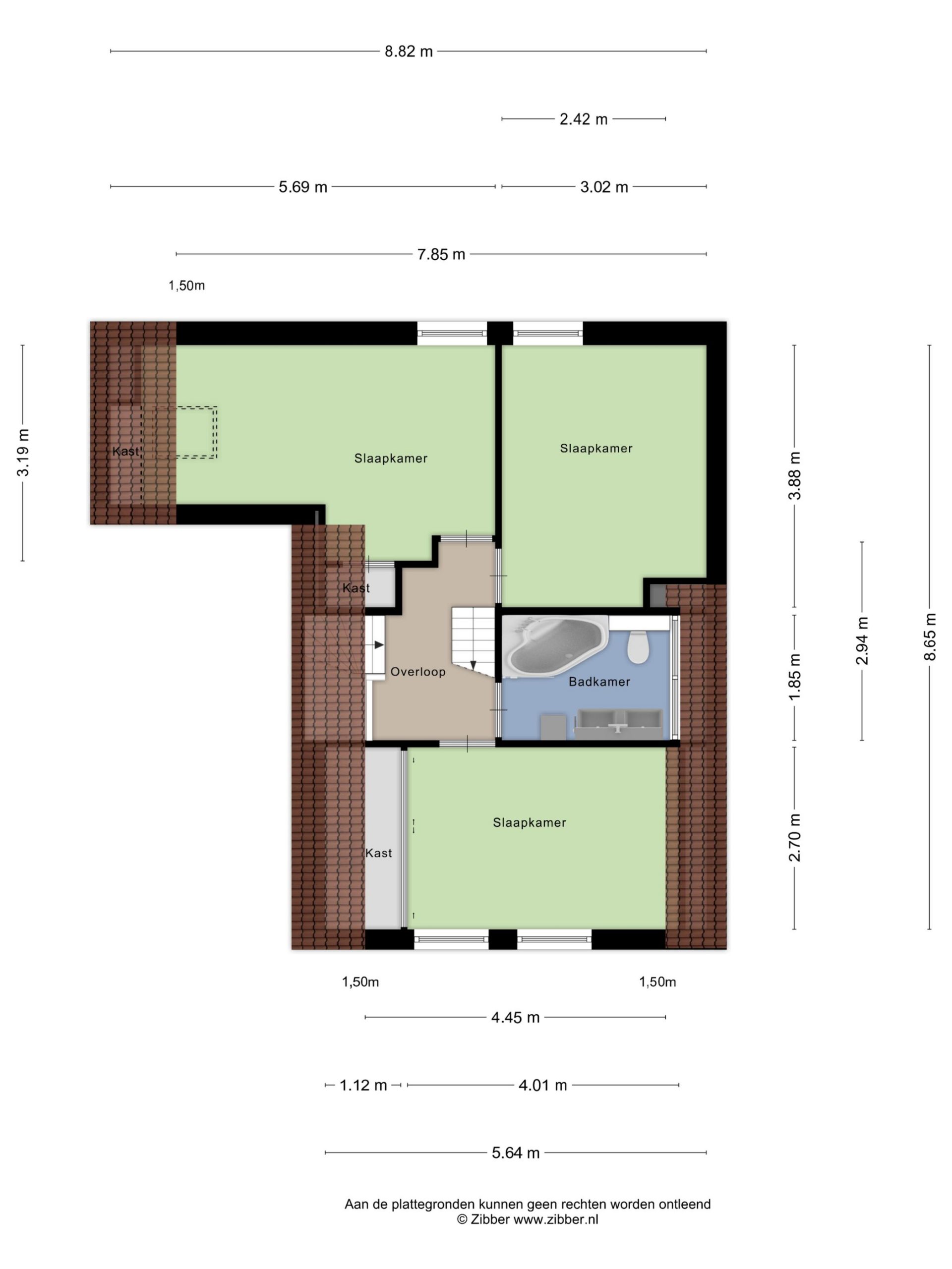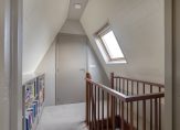 Op de eerste verdieping zijn drie ruime slaapkamers. De slaapkamer aan de voorzijde beschikt over een kastenwand. Twee slaapkamers beschikken over een airco en elektrische rolluiken. De badkamer is voorzien van een groot ligbad met douchemogelijkheid en douchescherm, een toilet en een dubbele wastafel met wastafelmeubel. Via een vaste trap bereik je de tweede verdieping. Hier is een overloop met toegang tot een bergzolder en een 4e slaapkamer met dakraam.
