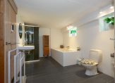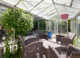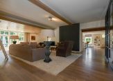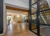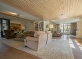 Een riante hal met vide en glazen scheidingswand verwelkomt u in stijl. De woning telt drie royale woonvertrekken, elk voorzien van haard, openslaande deuren en uitzicht op de fraai aangelegde tuin.