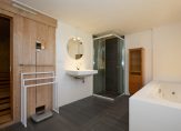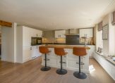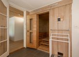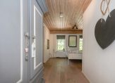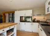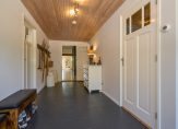 De woonkeuken vormt het hart van het huis en wordt verwarmd door een sfeervolle pelletkachel. Een aparte hal aan de achterzijde verbindt de woning met onder meer een kantoorruimte (of extra slaapkamer), een luxe slaapkamer met en-suite badkamer en sauna, een toilet en een praktische wasruimte.