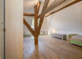 Een vaste trap brengt u naar de imposante zolderverdieping van 112 m², een ruimte met potentie – of het nu gaat om uitbreiding, hobby, logies of ontspanning.