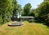 De tuin is professioneel aangelegd en rijk aan biodiversiteit – vogels, bijen en vlinders voelen zich hier meer dan welkom. Het elektrisch sierhekwerk, de grindoprit en de mogelijkheid tot het parkeren van meerdere auto’s benadrukken het statige karakter. Voor de dierenliefhebber is er ruimte voor een kippenren, een hondenkennel met geïsoleerd hok en zelfs plek voor schapen of ander kleinvee. Een gedeelte van de tuin is ingericht als moestuin, en hoewel de vijver enkel dient ter decoratie, kunt u in de omliggende sloot naar hartenlust vissen.