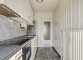 Afgesloten entree met bellenplateau, brievenbussen en toegang tot de bergingen. Gezamenlijke hal met trappenhuis naar de verdiepingen. Het ruime appartement bevindt zich op de derde verdieping. Entree appartement met hal naar de dichte keuken en aansluitend een balkon. Deze keuken beschikt over een elektrische kookplaat, vaatwasser, magnetron en losse koelkast.