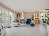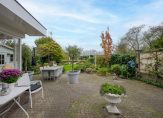 Je komt binnen in een ruime hal met garderobekast, toilet en bordestrap naar de eerste verdieping. De sfeervolle en royale living beschikt over een gasgestookte open haard en openslaande deuren naar de zonnige tuin. Grote raampartijen zorgen voor een prachtige lichtinval.