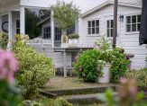 De prachtig aangelegde, zonnige achtertuin grenst direct aan vaarwater van de Oude Rijn en beschikt over een berging en een eigen aanlegsteiger. In de voortuin ligt een gezellig terras. In de middag en avond is het hier heerlijk toeven in de zon. De gehele tuin is voorzien van een sproei-installatie. In de voortuin is parkeergelegenheid voor drie auto’s op eigen terrein.