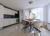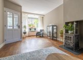 Via de oprit komen we bij de voordeur, waarachter we de entreehal vinden. In deze hal zijn de meterkast en de trapopgang gesitueerd. Vanuit de hal lopen we de woonkamer in, die samen met de woonkeuken in ca. 37m2 woonplezier voorziet. De erker zorgt in combinatie met de situering op het zuidwesten voor een prettige lichtinval in deze woonkamer, waar de schouw met houtkachel en de eiken parketvloer een sfeervolle basis vormen. Ook een praktische trapkast mag hier niet ontbreken.