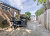 De royale achtertuin is maar liefst 23 meter diep en gelegen op het noordoosten. Door de afwisseling van bestrating en groen is er volop ruimte voor meerdere terrassen, speelruimte of een grote moestuin. Helemaal achterin de tuin staat een vrijstaande garage/berging van ca. 33 m², voorzien van elektra en verlichting. Ideaal als werkruimte, hobbyruimte of extra opslag!