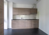 De keuken is voorzien van een inbouwkeuken met houtstructuur fronten en een antracietkleurig gemêleerd kunststof aanrechtblad. Je hebt hier de beschikking over een vaatwasser, spoelbak, inductiekookplaat, wasemkap en een apothekerskast. Met 2 schuifdeuren kun je de keuken van de woonkamer scheiden.