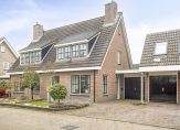 Aan de voorzijde zorgt de volledig bestrate oprit voor parkeergelegenheid op eigen terrein. De voortuin is fraai aangelegd met bestrating, kunstgras, twee sierappelbomen en beplanting.