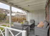 Direct achter de bijkeuken en garage bevindt zich een sfeervolle, aangebouwde veranda: een verlengstuk van de leefruimte waar je beschut kunt zitten, ongeacht het seizoen. Of het nu gaat om een ontspannen ochtendkoffie, lange zomeravonden met vrienden of een rustig moment met een goed boek: hier zit je altijd comfortabel, mede dankzij de 2 heaters. Onder de veranda zijn praktische bergkasten gerealiseerd, perfect voor het opbergen van tuinspullen en kussens.