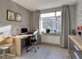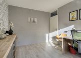 In de 3 slaapkamers ligt een nette laminaatvloer en de overloop en trappen zijn voorzien van antracietkleurig tapijt. De wanden zijn afgewerkt met spachtelputz, alleen in de slaapkamer aan de voorzijde is 1 wand voorzien van behang.