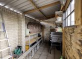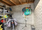 Achterin bevindt zich een stenen berging met verlichting en elektra, perfect voor het opbergen van fietsen of (tuin)gereedschap. Daarnaast is er een fraaie overkapping geplaatst, ideaal voor het stallen van containers.
