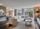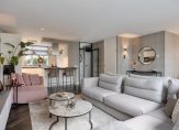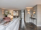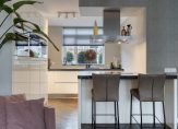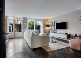 Achter de staallook deur ontvouwt zich de lichte en royale woonkamer met half open keuken, waar luxe en comfort samenkomen. Met ca. 43m2 aan leefruimte biedt de woonkamer plaats aan zowel een royale zithoek als een ruime eethoek. De visgraat massief houten vloer in combinatie met strak gestuukte wanden en plafonds zorgt voor een warm en eigentijds geheel. Vanuit de woonkamer kijk je uit op de fraai aangelegde achtertuin, terwijl een trapkast en een convectorput praktische extra’s bieden. De schuifpui en tuindeur verbinden het interieur naadloos met buiten, waardoor licht en ruimte maximaal benut worden.