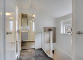 De royale overloop is een echte eyecatcher dankzij de speelse kapconstructie en het raam in de zijgevel, die zorgt voor aangenaam daglicht (tot beneden in de hal) en een prettige sfeer. Vanaf de overloop heb je toegang tot drie ruime slaapkamers, de moderne badkamer, een vaste kast en de cv-kast. In de cv-kast staat de zo goed als nieuwe HR-cv-combi ketel opgesteld (Nefit Proline NxT uit september 2024) en de diepe vaste kast zorgt voor veel praktische opbergruimte.