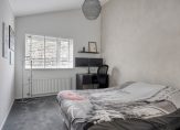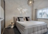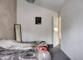 De slaapkamer aan de voorzijde (ca. 14m2) is voorzien van een schuifkastenwand. Aan de achterzijde vind je twee slaapkamers van ca. 13 en 8m2, ideaal als kinderkamer, werkkamer of logeerkamer. In de 2 grootste slaapkamers zorgen de hoge, schuin aflopende plafonds voor een speels en ruimtelijk effect.