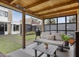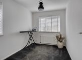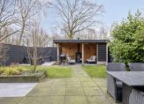 Het geheel straalt rust, privacy en verzorging uit. De tuin is onderhoudsarm aangelegd met grote tegels, kunstgras en borders met beplanting, waardoor er altijd een harmonieuze balans is tussen groen en verharding. Voor extra gemak is er een praktische houten berging voor tuingereedschap en andere spullen. Via een afsluitbare poort heb je directe toegang tot het aangrenzende wandelpark, een unieke toevoeging voor liefhebbers van natuur, rust en vrijheid.