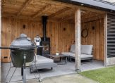 De tuin is gelegen op het zuidoosten, waardoor je al vroeg op de dag van de zon kunt genieten, terwijl er op warme dagen altijd een koele, schaduwrijke plek te vinden is. Direct aan de achtergevel ligt een groot terras met zonnescherm, ideaal voor ontbijt in de zon of een gezellige borrel in de avond. De veranda is een absolute blikvanger: met de sfeervolle houtkachel kun je hier in elk seizoen genieten van het buitenleven, ongeacht het weer.