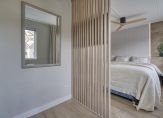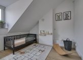 Op de eerste verdieping kom je via de overloop bij drie slaapkamers en de badkamer. De grootste slaapkamer ligt aan de voorzijde en is voorzien van een sfeervolle roomdivider naar de kastenwand; je zou hier ook uitstekend een walk-in-closet kunnen creëren. De 2 slaapkamers aan de achterzijde beschikken beiden over een handbediend rolluik.