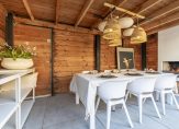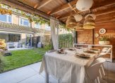 De fraai aangelegde tuin ligt op het westen en biedt daardoor tot in de avond volop zon. Hier geniet je van het buitenleven op het ruime terras of onder de grote veranda, die is voorzien van elektra en een houtkachel; ideaal voor gezellige zomeravonden. De tuin is verzorgd ingericht met bestrating, gazon, borders met grassen, een zandbak en prachtige beplanting zoals een hortensia, druivenstruik, passievrucht en een witte plantenbak met vijg. Praktisch zijn ook de bergkast met buitenkraan, het elektrisch zonnescherm en de achterom naar het achtergelegen pad.