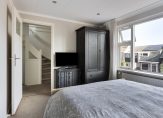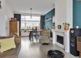 Vanuit de hal heb je toegang tot de keuken en de woonkamer. De woonkamer is zowel straat- als tuingericht en heeft een prettige lichtinval door de grote ramen in voor- en achtergevel. Sfeermakers in deze ruimte zijn de schouw met elektrische haard en de sierlijsten langs het plafond.