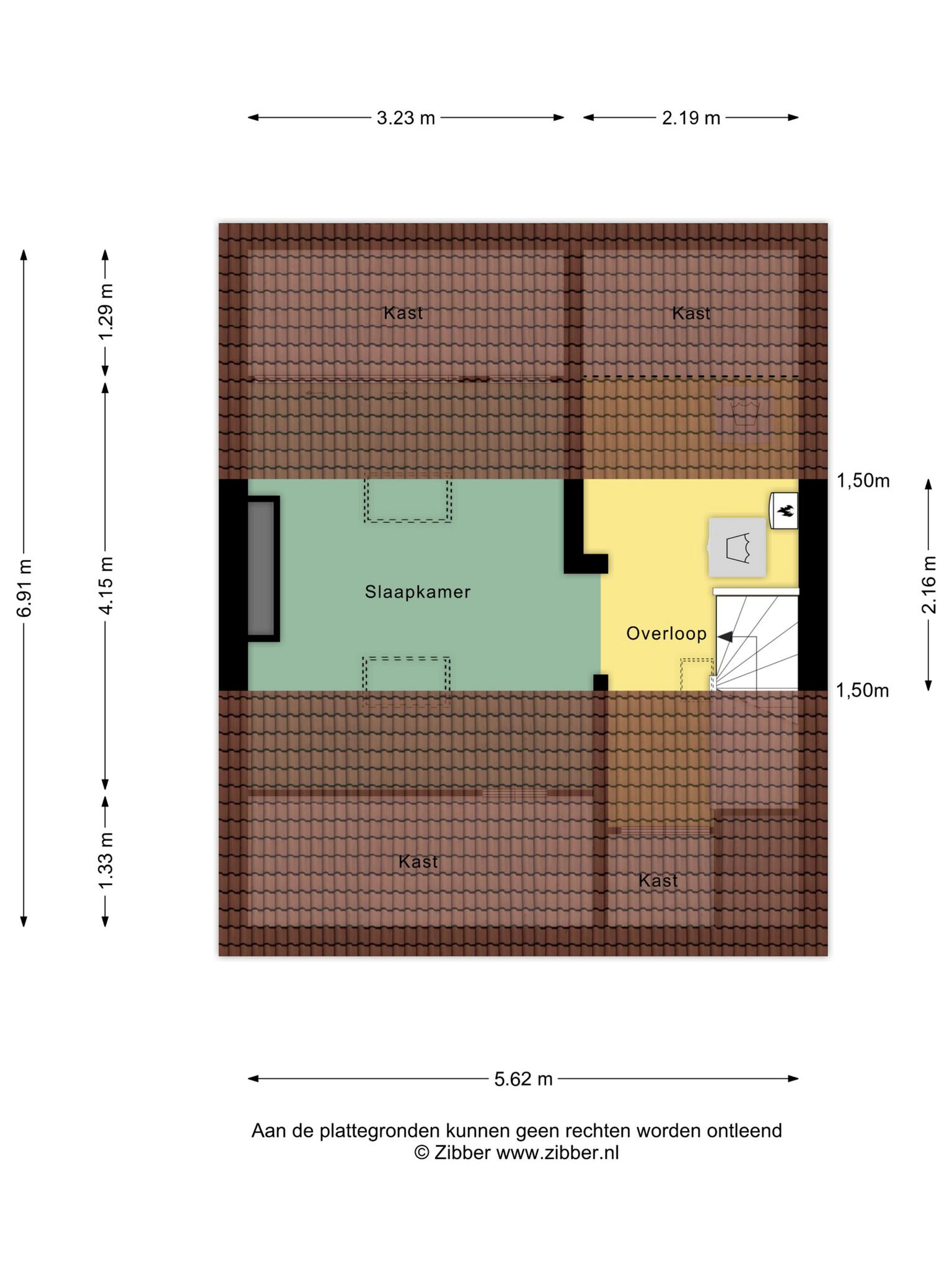 De 2e verdieping is onderverdeeld in een voorzolder en een 4e slaapkamer. De voorzolder is voorzien van een Velux-dakraam en een aansluiting voor de wasmachine. Ook staat hier de cv-ketel opgesteld (Remeha Tzerra 28c uit 2013). De slaapkamer is aan weerszijden voorzien van een Velux-dakraam en bergruimte.