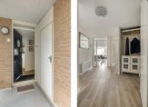 Bij binnenkomst komt u in de opvallend ruime entreehal, een prettige binnenkomer die direct een gevoel van ruimte geeft. Hier vindt u de videofooninstallatie, een garderobehoek, de meterkast en een praktische vaste bergkast. Vanuit de hal zijn alle vertrekken bereikbaar, wat zorgt voor een overzichtelijke en comfortabele indeling.