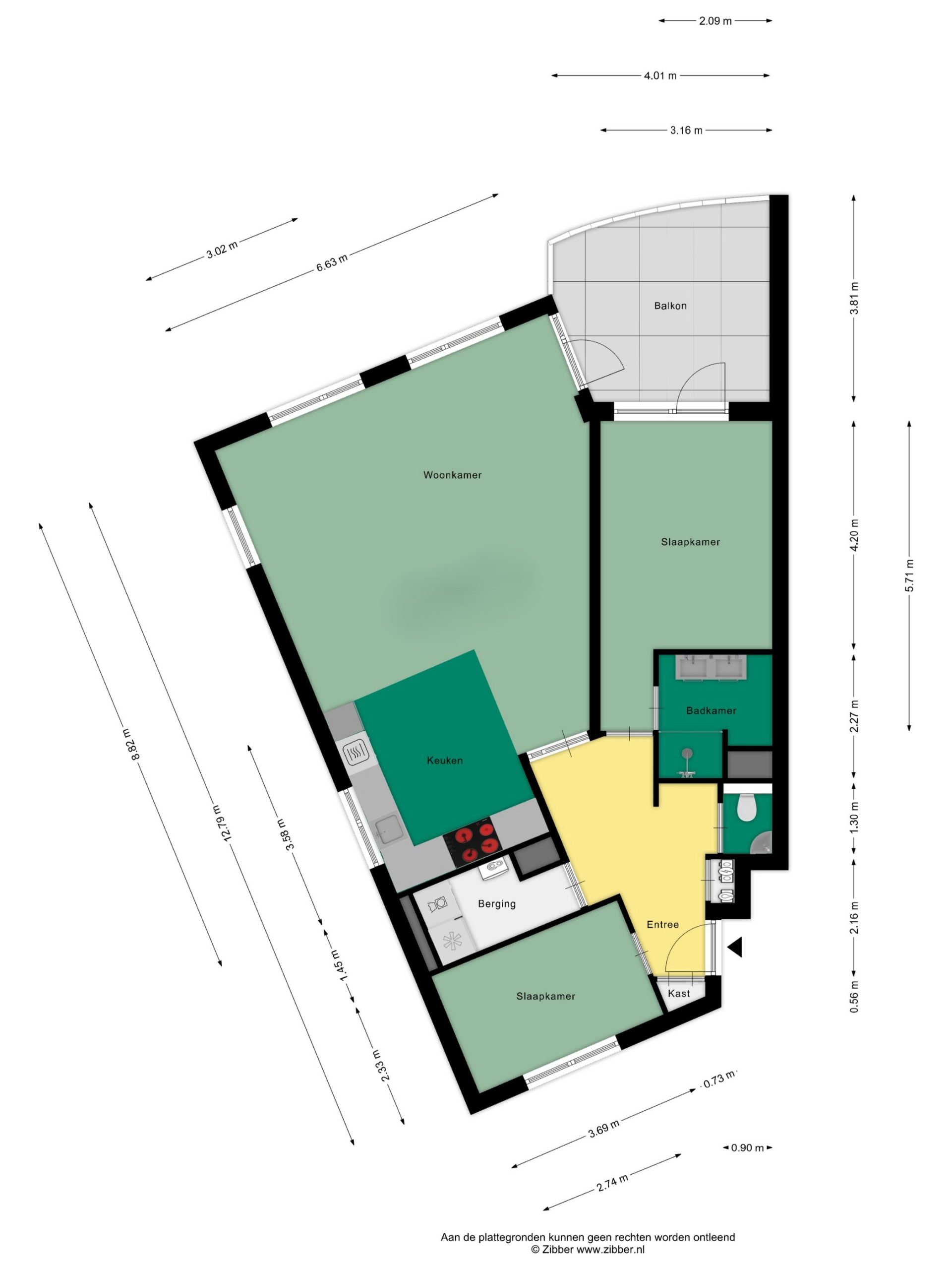 Het appartement beschikt over twee slaapkamers, beiden van een goed formaat. De grootste slaapkamer meet circa 15m2, is voorzien van een kastenwand en heeft via een deur met hordeur direct toegang tot het balkon. De tweede slaapkamer is met circa 9m2 eveneens prettig ruim en veelzijdig te gebruiken, bijvoorbeeld als logeer- of werkkamer.