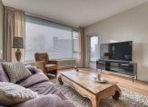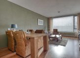 De woonkamer heeft een prettige lichtinval door het kamerbrede raam en is voorzien van een deur naar het balkon. Dit ruime balkon (11m2) is zonnig gesitueerd op het zuidwesten en hiervandaan heb je een mooi en vrij uitzicht op het voorgelegen plantsoen.