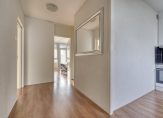 Achter de voordeur bevindt zich de ruime entreehal. Deze is voorzien van een praktische garderobenis, de meterkast en de videofooninstallatie. Vanuit de hal heb je toegang tot de keuken, badkamer, toiletruimte, woonkamer en de grootste slaapkamer.