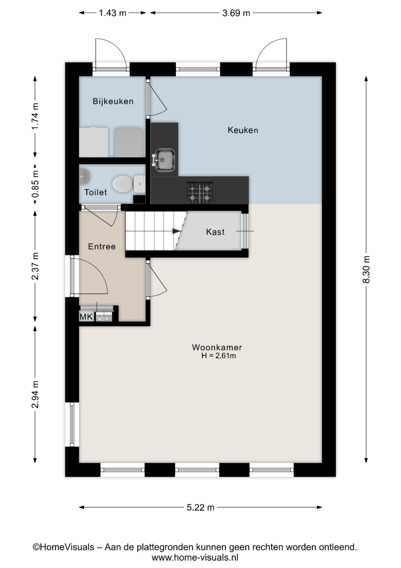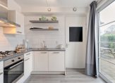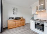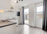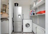 Binnenkomst in de hal met toilet, meterkast en trapopgang. De straatzijde woonkamer is licht en ruim dankzij de grote raampartijen en biedt volop mogelijkheden voor een gezellige zit- en eethoek. De open keuken is voorzien van diverse inbouwapparatuur en heeft ruimte voor een fijne eettafel. Vanuit hier loop je door naar de bijkeuken, waar je de witgoedaansluitingen vindt en toegang hebt tot de achtertuin.