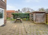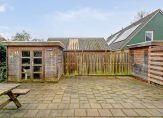 De achtertuin ligt op het zuiden, waardoor je hier vrijwel de hele dag van de zon geniet. Er is plek voor meerdere zitjes en dankzij de achterom is de tuin ook praktisch in gebruik. De vrijstaande houten berging met elektra biedt extra bergruimte. Aan de voorzijde beschik je bovendien over een eigen oprit.