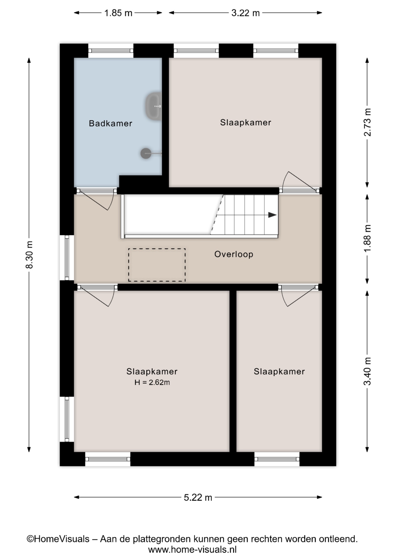 Op de eerste verdieping bevinden zich drie volwaardige slaapkamers, allemaal met een prettige lichtinval. De badkamer is verzorgd en uitgerust met een inloopdouche en een wastafel.