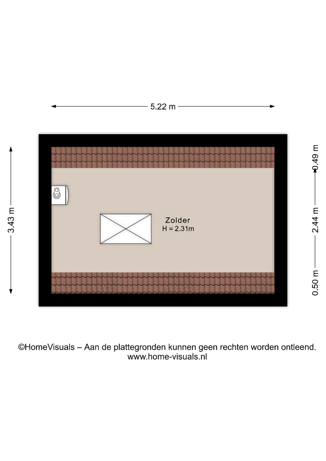 Via een vlizotrap bereik je de ruime bergzolder. Deze verdieping dient momenteel puur als opslagruimte en is ideaal voor koffers, seizoensspullen of andere zaken die je niet dagelijks nodig hebt. De zolder biedt ook goede mogelijkheden voor het plaatsen van een vaste trap en het creëren van een extra slaapkamer of werkruimte.